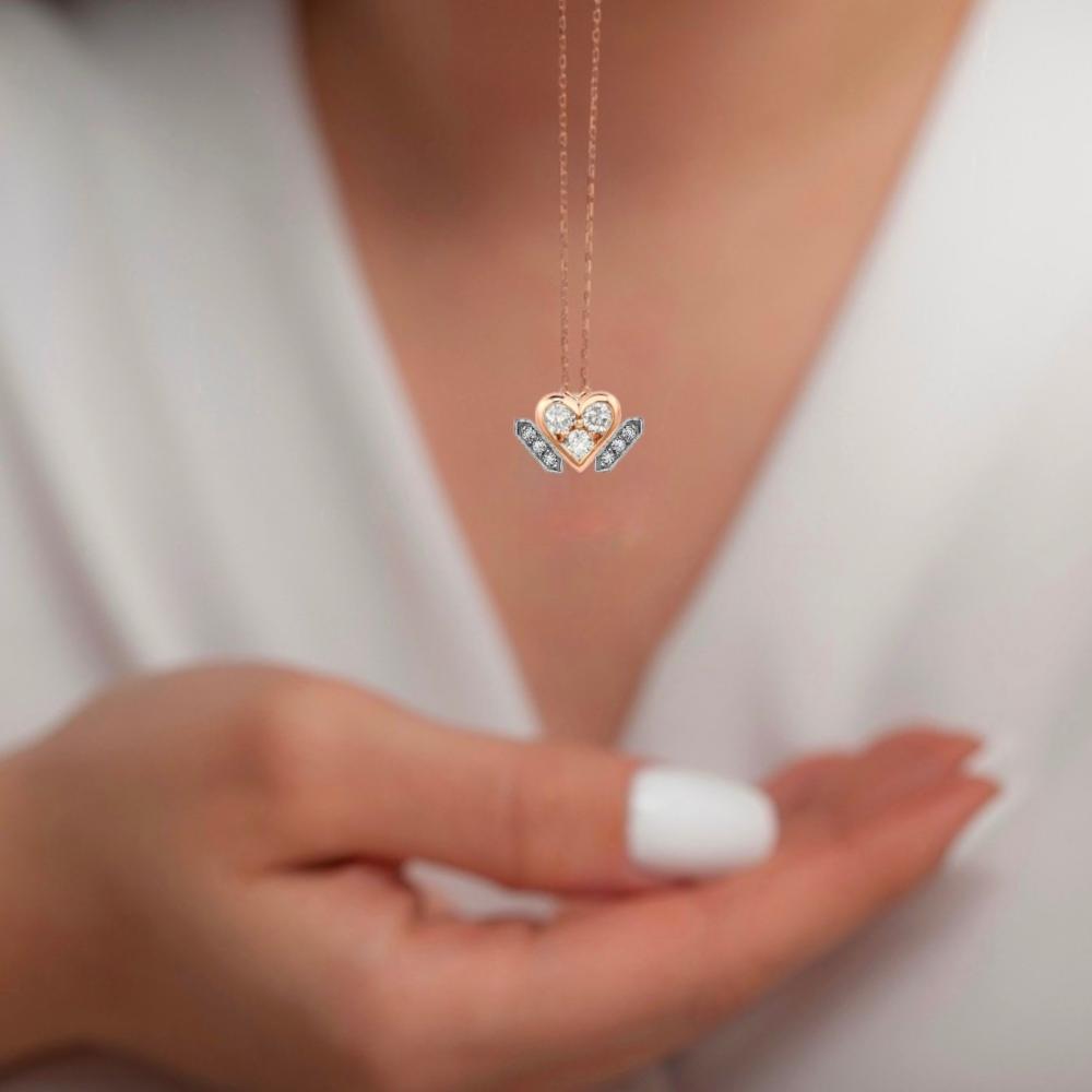 قلادة الماس تم تصميمها بحرفية عالية باستخدام ال ذهب الروز و الأبيض عيار 18 مما يبرز جمالية التصميم